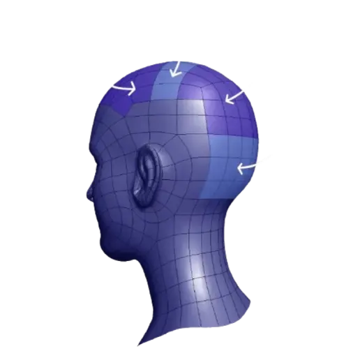 لوب پس سری: بخش ورتکس سر که با زاویه ۳۵ تا ۴۵ درجه کاشت میشود.
