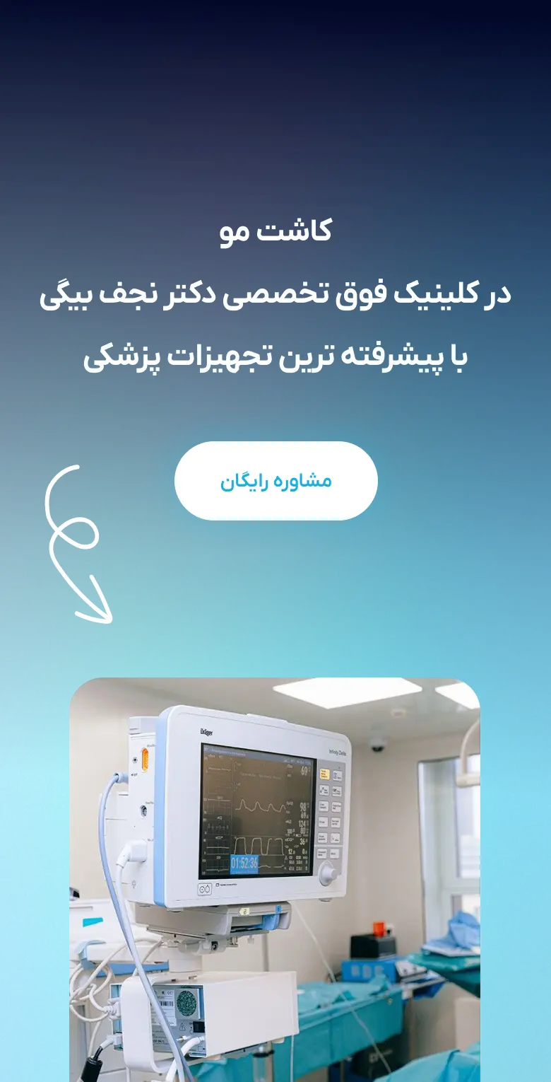 کلینیک کاشت مو دکتر ارش نجف بیگی با نزدیک به ۱۵ سال سابقه درخشان و در اختیار داشتن تیم پزشکی متخصص و اپراتورهای دوره دیده در لیست بهترین کلینیک تخصصی کاشت مو و زیبایی در تهران قرار می گیرد. این مجموعه زیبایی با داشتن بهترین دستگاه های تخصصی و تجهیزات پیشرفته با آخرین فناوری روز دنیا، مجهزترین کلینیک کاشت مو و زیبایی ایران و خاورمیانه است. بدین ترتیب می توانید برای بهره مندی از بهترین خدمات زیبایی کاشت مو متناسب با آخرین استاندارده روز دنیا به کلینیک تخصصی کاشت مو دکتر نجف بیگی در تهران مراجعه نمایید.